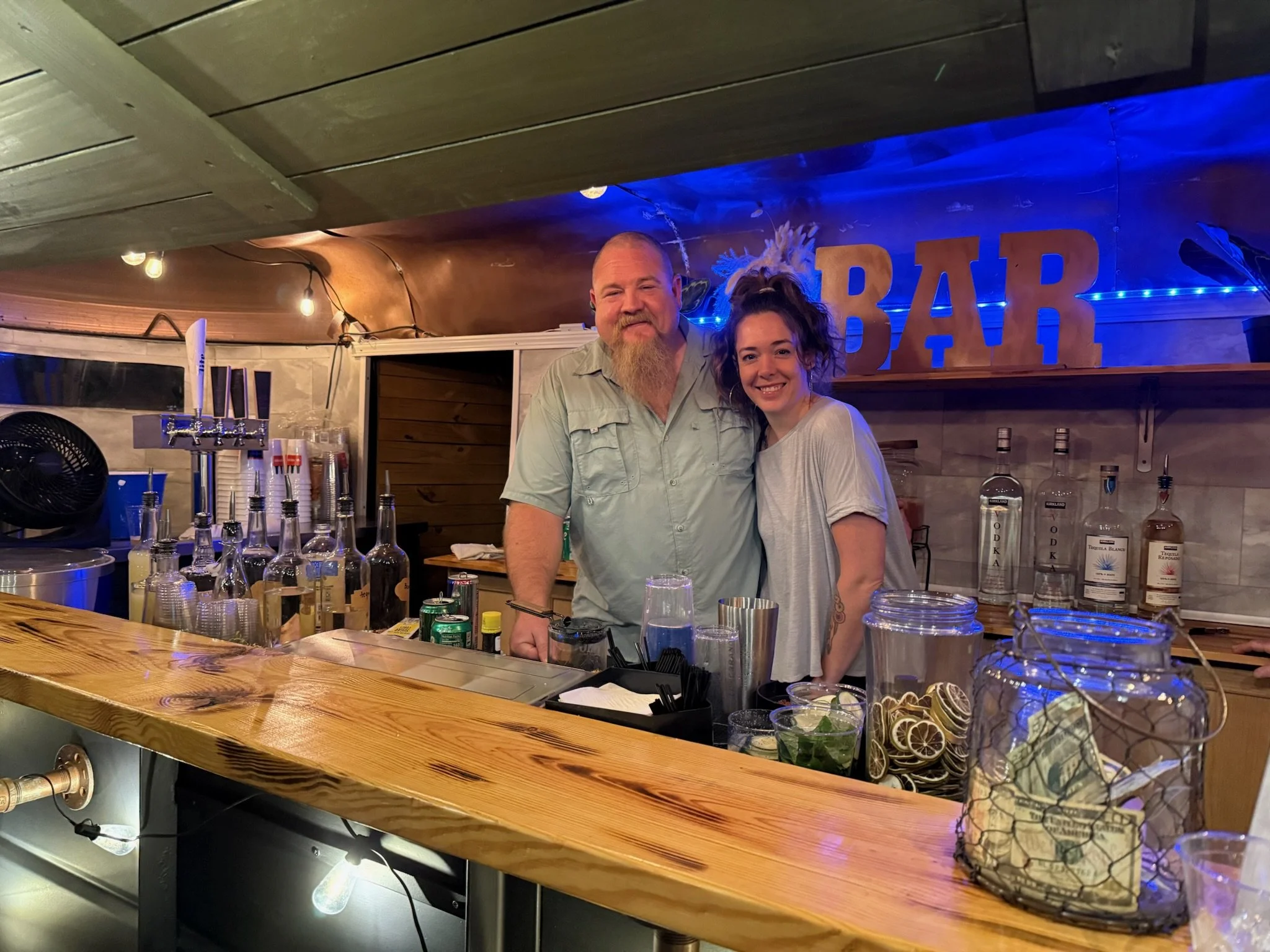 Haulin’ Toasts is a product of the passion, creativity, and innovation of Claire Murphy and Justin Bailey. After dating for two years, we decided to challenge ourselves with a project that would let us spend more time together and bring fun and excitement to our community. Claire has been in the food service industry for twenty years and has mastered the art of mixology. She’s served, bartended, and managed numerous restaurants of all styles, and has been featured in as well as contributed to several restaurant publications. Justin’s career of twenty-five years in the communications and security industry made him a very experienced patron of the food and bar industry while traveling, but he had no prior food service experience. He has recently closed that chapter of his career and is excited to be off the road and able to focus on a local business with a fantastic clientele. Many of our friends have told us that the two of us combined make up the perfect duo. Our personalities, experiences, and talents are vastly different and we’re always introducing each other to new ideas. Haulin’ Toasts lets us both enjoy doing what we do best so that we can provide an unforgettable experience for our customers, partners, and staff.